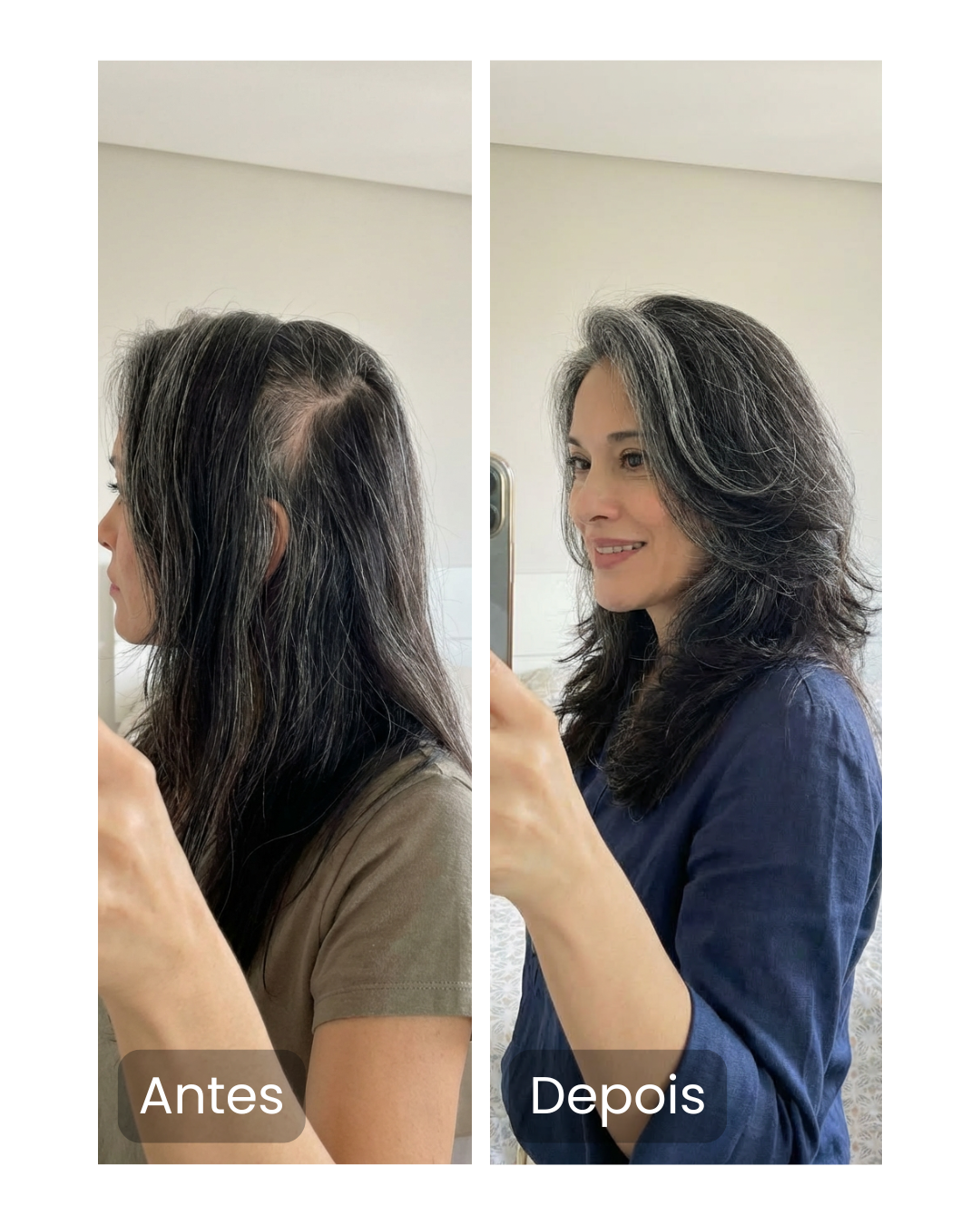 Após acompanharem centenas de mulheres que passaram a perder cabelo durante a pré-menopausa e a menopausa, especialistas em saúde capilar identificaram um padrão consistente: o desequilíbrio hormonal torna a raiz mais sensível, interrompe o ciclo de crescimento e enfraquece progressivamente os fios.
